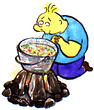 Jíšku v ní hned rozmícháte, aby se neudělaly žmolky, přidáte připravenou zeleninu, brambory, koření a sůl. A teď naopak přihodíme na oheň. Jenže když voda začne bublat, pozor, musíte trošku odklopit víko a zase plameny zmírnit, aby polévka nevzkypěla moc, neutekla ven a oheň neuhasila!